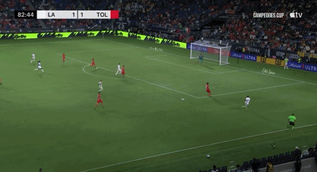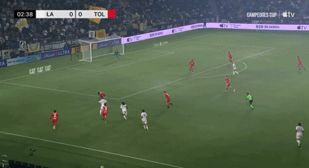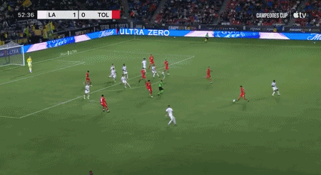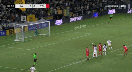 第35分钟,佩茨造点,法贡德斯主罚命中,洛杉矶银河1-0托卢卡体育